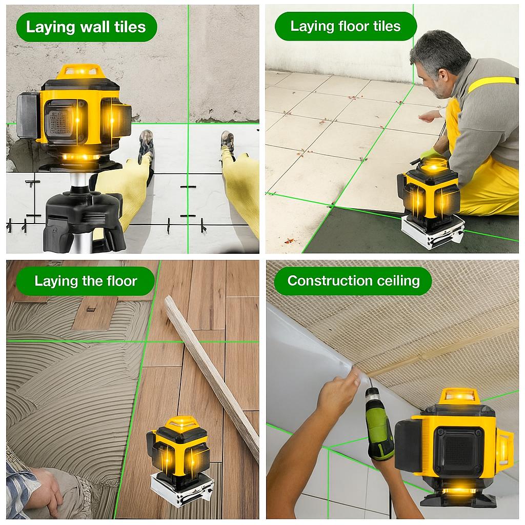 No more guessing, constant measuring, or correcting mistakes. With the 360° Advanced 16-Line 4D Laser, large projects become simple, accurate, and stress-free, giving you professional results every time — whether you’re tiling, installing cabinets, or aligning walls.